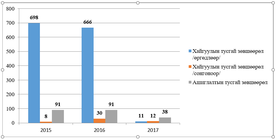 Шинээр олгосон тусгай зөвшөөрлийн тоо /2015-2017 он/