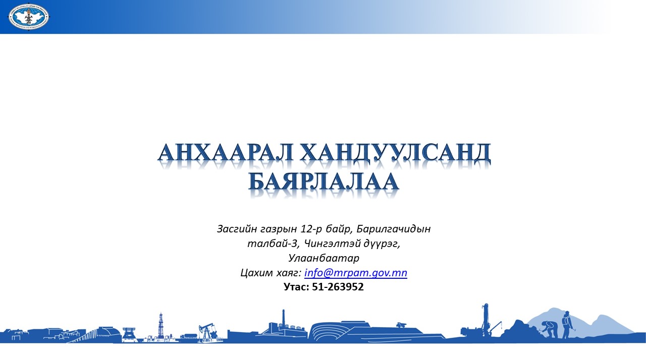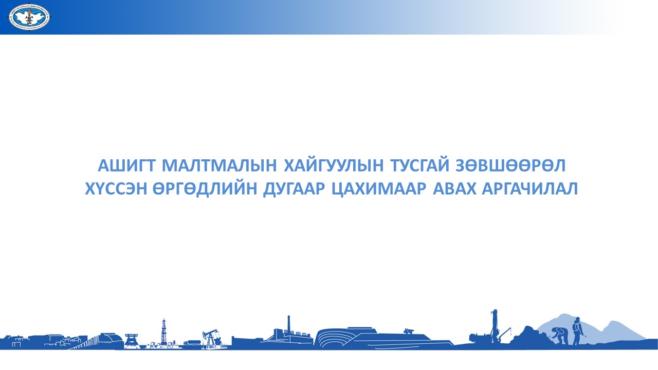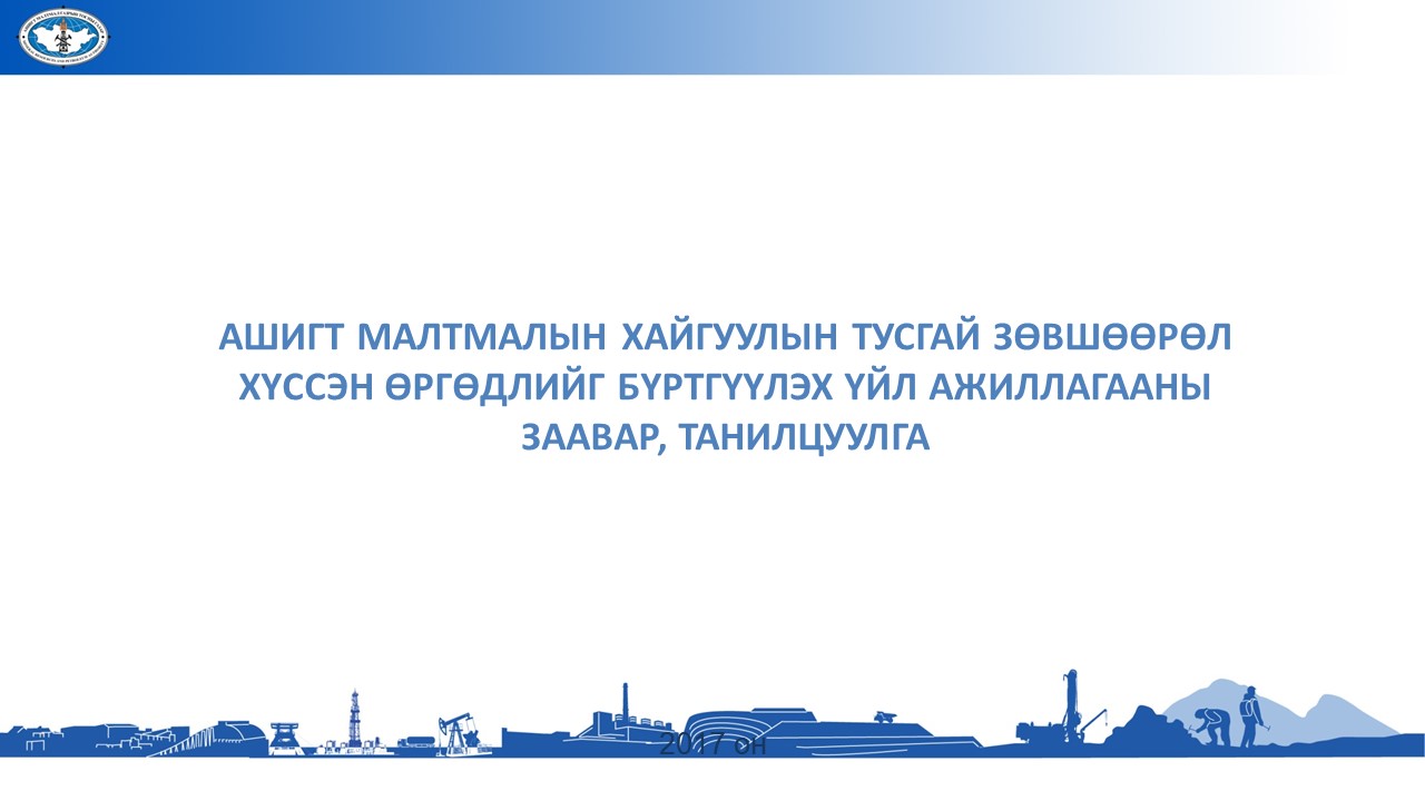 Ашигт малтмалын хайгуулын тусгай зөвшөөрөл хүссэн өргөдлийг бүртгүүлэх үйл ажиллагааны шинэчилсэн заавар, танилцуулга татаж авахАшигт малтмалын хайгуулын тусгай зөвшөөрөл хүссэн өргөдлийг бүртгүүлэх үйл ажиллагааны шинэчилсэн заавар, танилцуулга татаж авах