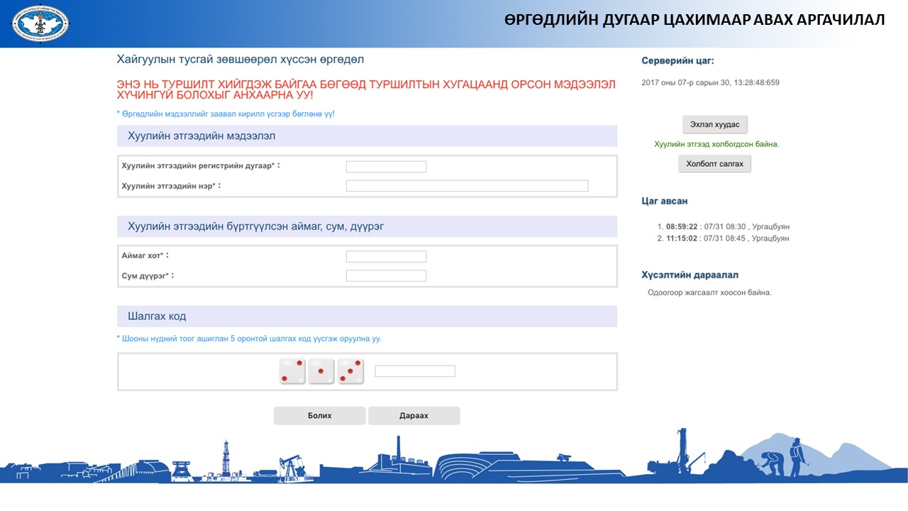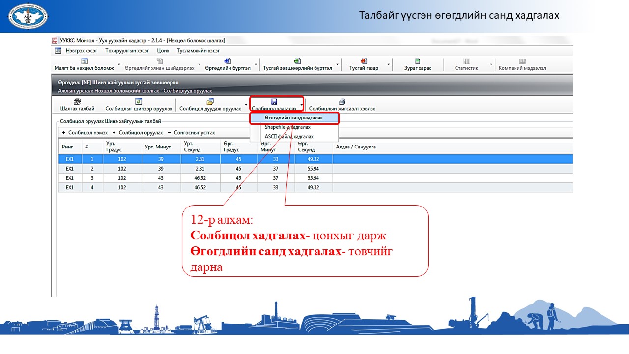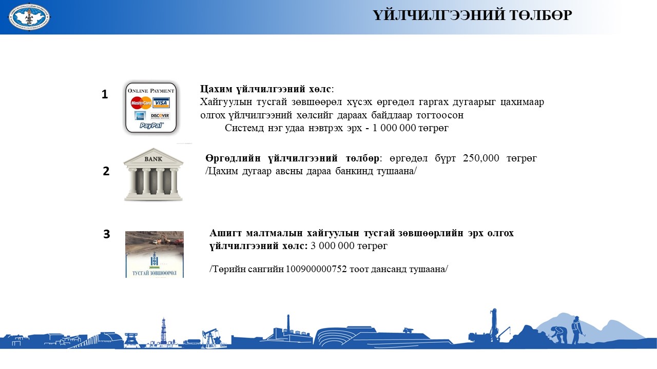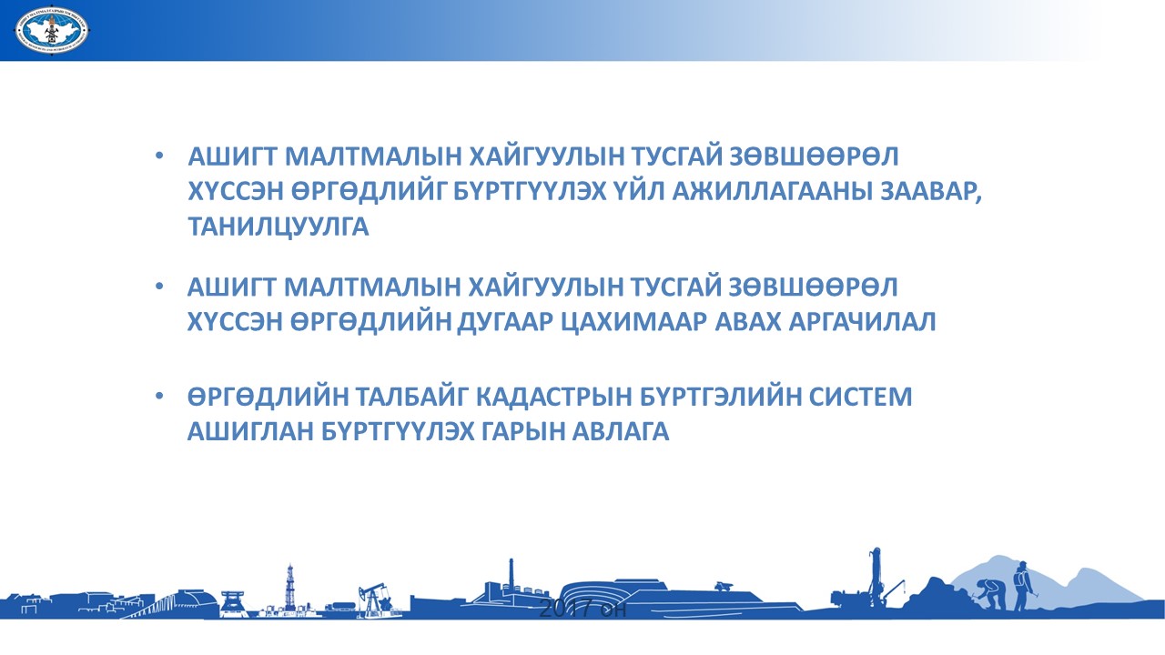 Ашигт малтмалын хайгуулын тусгай зөвшөөрөл хүссэн өргөдлийг бүртгүүлэх үйл ажиллагааны шинэчилсэн заавар, танилцуулга татаж авахАшигт малтмалын хайгуулын тусгай зөвшөөрөл хүссэн өргөдлийг бүртгүүлэх үйл ажиллагааны шинэчилсэн заавар, танилцуулга татаж авах