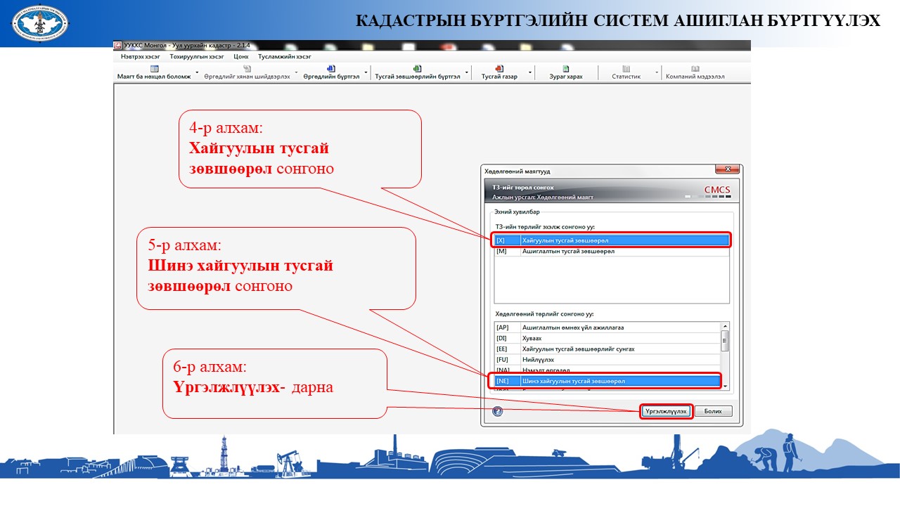 Ашигт малтмалын хайгуулын тусгай зөвшөөрөл хүссэн өргөдлийг бүртгүүлэх үйл ажиллагааны шинэчилсэн заавар, танилцуулга