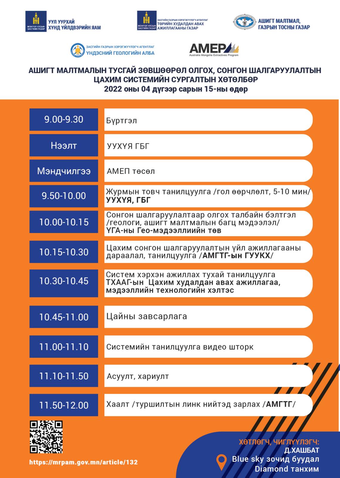 Ашигт малтмалын тусгай зөвшөөрөл олгох, сонгон шалгаруулалтын цахим системийн сургалтад урьж байна