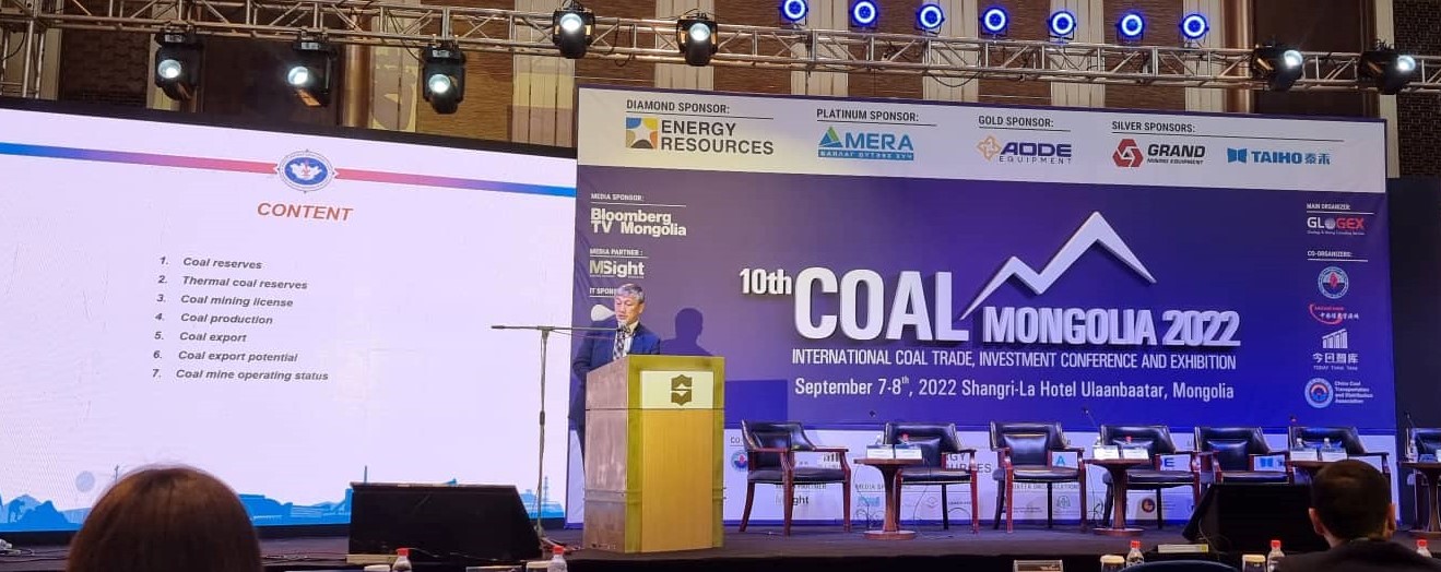 “Coal Mongolia-2022” чуулга уулзалтын үеэр Эрчим хүчний нүүрсний экспортын потенциал ба эрчим хүчний төслүүд хэсэгт АМГТГ-ын Уул уурхайн хэлтсийн дарга М.Мэндбаяр “Монгол Улсын эрчим хүчний нүүрсний нөөц ба экспортын потенциал” сэдвээр илтгэл тавьж, сэдвийн хэлэлцүүлэгт панелистаар оролцлоо.