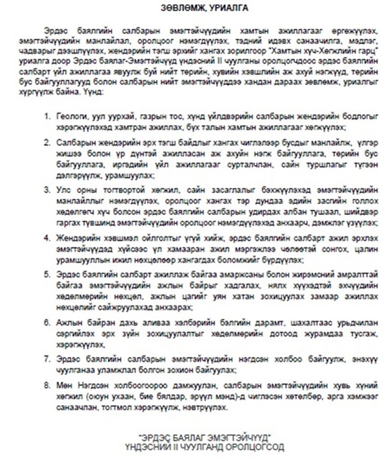 "Эрдэс баялаг-Эмэгтэйчүүд” үндэсний чуулган - II гаргасан зөвлөмж, уриалга