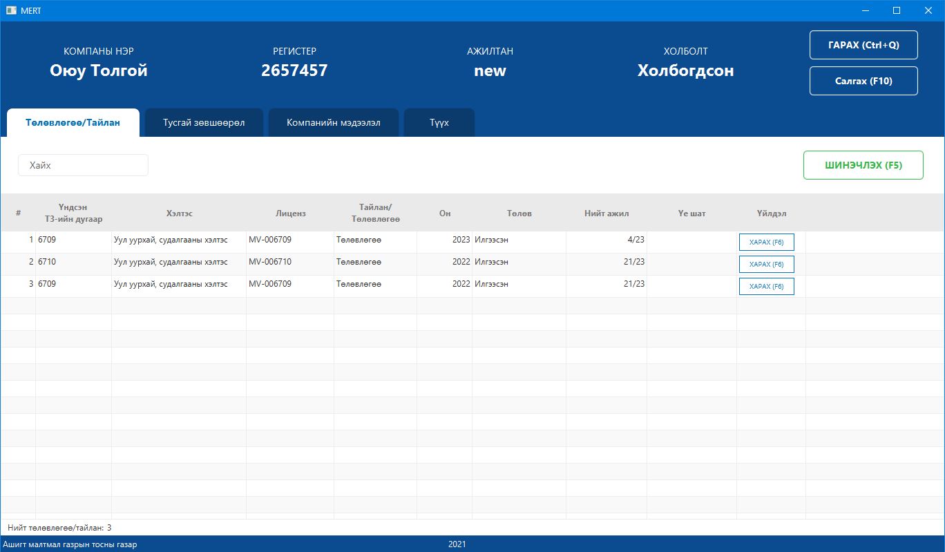 Шинэчилсэн системийн ашиглалтын талаарх танилцуулга, сургалтыг 2021 оны 11 дүгээр сарын эхээр хийхээр төлөвлөж байгаа тул ашиглалтын тусгай зөвшөөрөл эзэмшигч та бүхэн идэвхтэй оролцохыг хүсье.