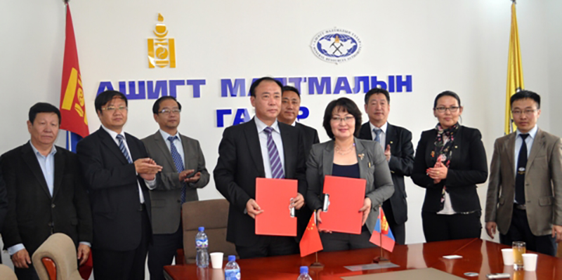БНХАУ-ын Өвөр Монголын өөртөө засах орны Улсын газар шороо, эх баялгийн тэнхим (яам)-тэй геологи, уул уурхайн салбарт хамтран ажиллах тухай Санамж бичигт 2015 оны 6 дугаар сарын 11-ний өдөр АМГ-ын даргын үүргийг түр орлон гүйцэтгэгч Д.Үүрийнтуяа, Өвөр Монголын өөртөө засах орны Улсын газар шороо, эх баялгийн тэнхим (яам)-ний дэд дарга Ху Зи Чин нар гарын үсэг зурлаа.