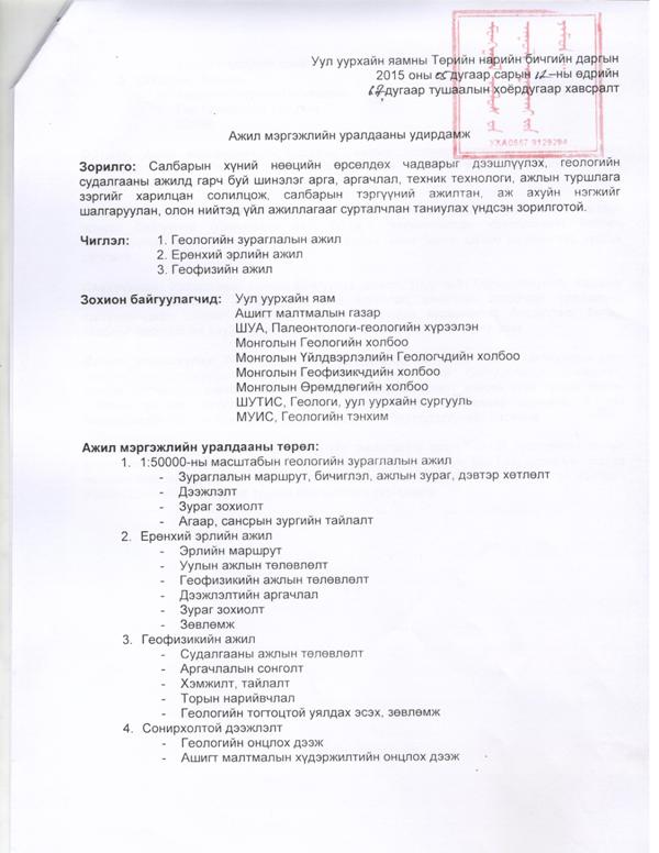- 1:50 000-ны масштабын геологийн зураглал, ерөнхий эрлийн ажил