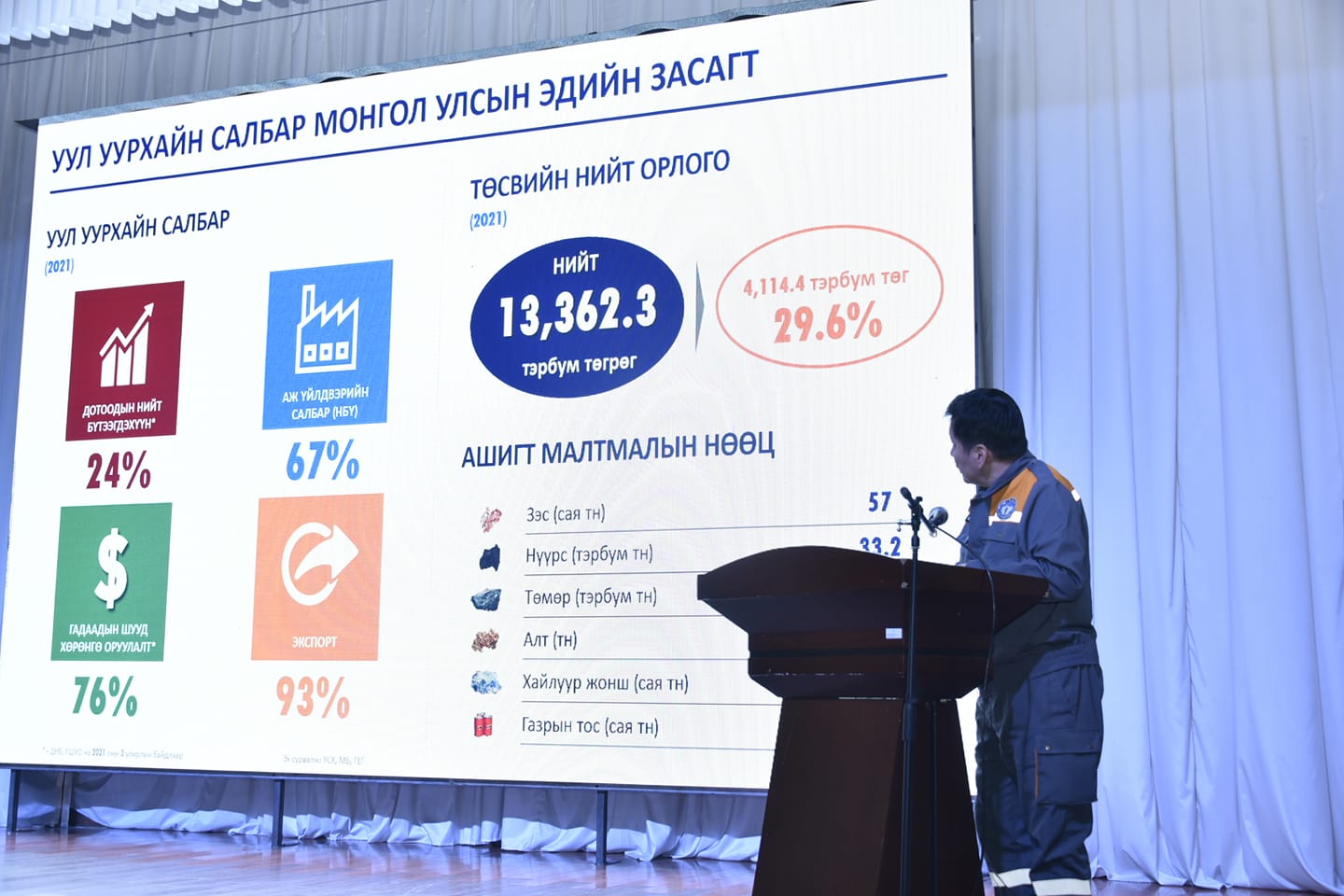 Тогтвортой хөгжлийн үзэл баримтлалын гурван тулгуурт бодлогыг нэг эдийн засгийн үндэс суурь болсон уул уурхай, ашигт малтмалын салбарыг хөгжлийг тус аймагт аймгийн Засаг даргын 2020-2024 оны үйл ажиллагааны хөтөлбөр,аймгийг хөгжүүлэх таван жилийн үндсэн чиглэлд хариуцлагатай уул уурхайг хөгжүүлэх, аймгийн хэмжээнд үйл ажиллагаа явуулж буй ашигт малтмалын тусгай зөвшөөрөл эзэмшигч аж ахуйн нэгжүүдийн нийгмийн хариуцлагыг сайжруулж орон нутгийн хөгжилд оруулах хувь нэмрийг оруулах , Түгээмэл тархацтай ашигт малтмалын илрэлийн нөөцийн судалгааг хийлгэх , орд газрын нөөцийг тогтоох, үйлдвэрлэлийг стандартад нийцсэн түүхий эдээр хангах гэсэн зорилтуудыг дэвшүүлэн ажиллаж байна. Эдгээр зорилтуудыг хэрэгжүүлэхэд холбогдох хууль тогтоомжид тулгамдаж буй асуудлыг хэлэлцэн нэгдсэн ойлголцолд хүрч, орон нутгийн зүгээс гаргаж буй санал санаачлагыг дэмжин хамтран ажиллана гэдэгт итгэж байна гэв.