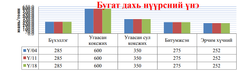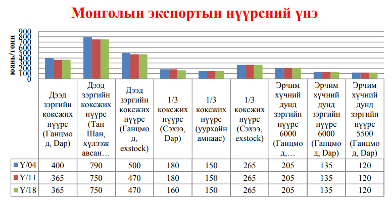 Y/11-нд Монголын дээд зэргийн коксжих нүүрсний үнэ төрлөөс хамааран 30-40 юань/тонноор буурсан байна.