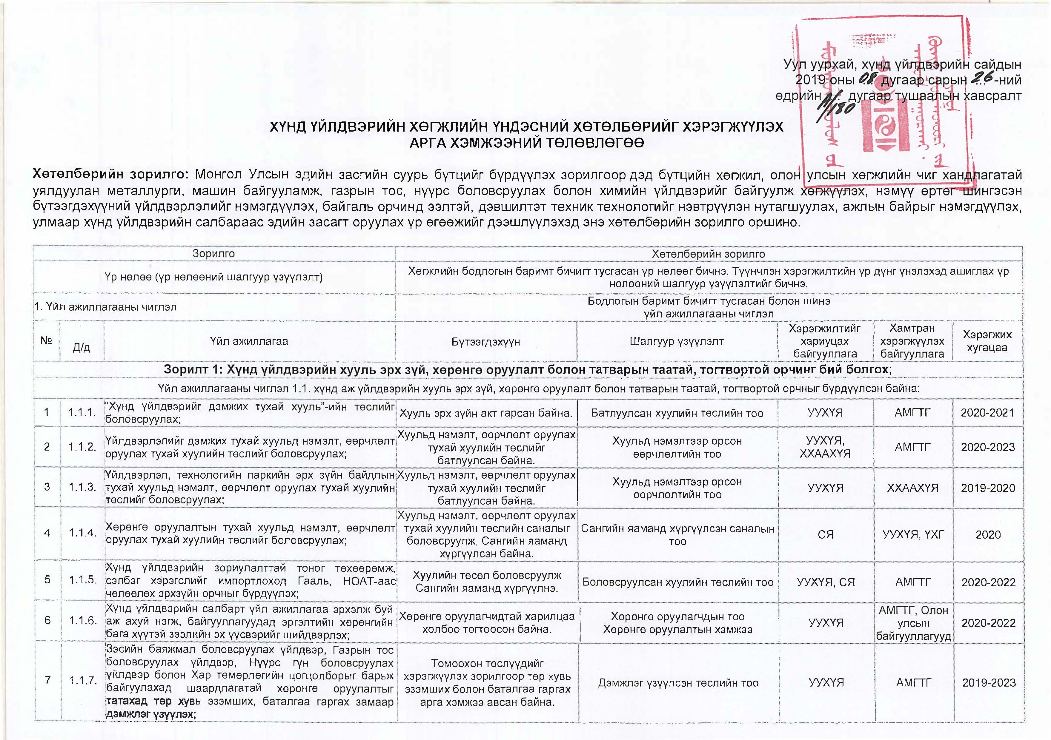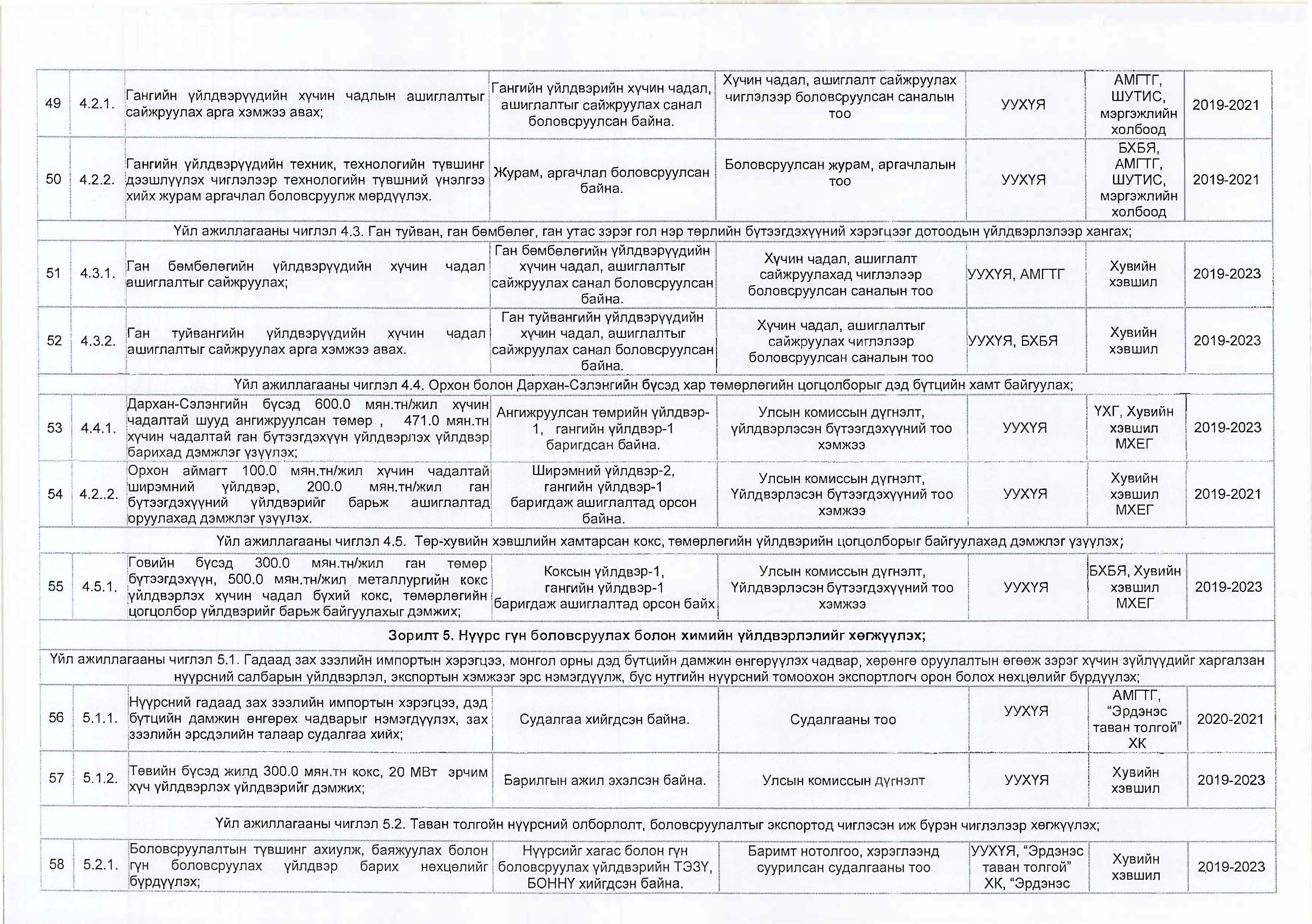"Хүнд үйлдвэрийн хөгжлийн үндэсний хөтөлбөр"-ийг хэрэгжүүлэх арга хэмжээний төлөвлөгөөг баталлаа