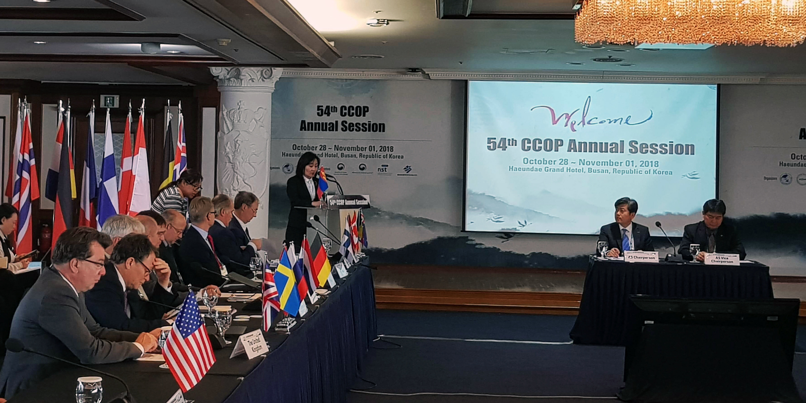 Зүүн, Зүүн-Өмнөд Азийн Геологийн шинжлэх ухааны зохицуулах хороо (CCOP)-ны 54 дүгээр ээлжит чуулган  2018 оны 10 дугаар сарын 29-нөөс 11 дүгээр сарын 2-ны өдрүүдэд БНСУ-ын Бусан хотноо зохион байгуулагдлаа.