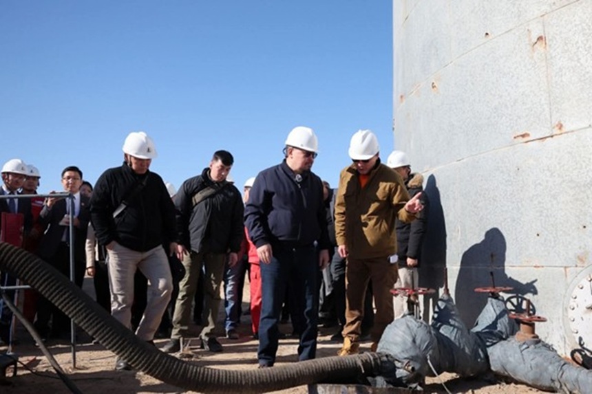 ✅ Мөн Засгийн газрын тэргүүн болон гишүүд “1997 оны БХГ-т талбай”-д байрлах Зүүнбаян, Цагаан-Элсний ордын газрын тосны олборлолт, хадгалалт, цэвэршүүлэх байгууламжийн үйл ажиллагаатай газар дээр нь танилцаж, газрын тосны олборлолтын технологи болон олборлолтыг нэмэгдүүлэх боломжийн талаар санал солилцлоо.