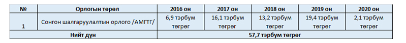 - АМГТГ-аас Улсын төсөвт төвлөрүүлсэн орлого.