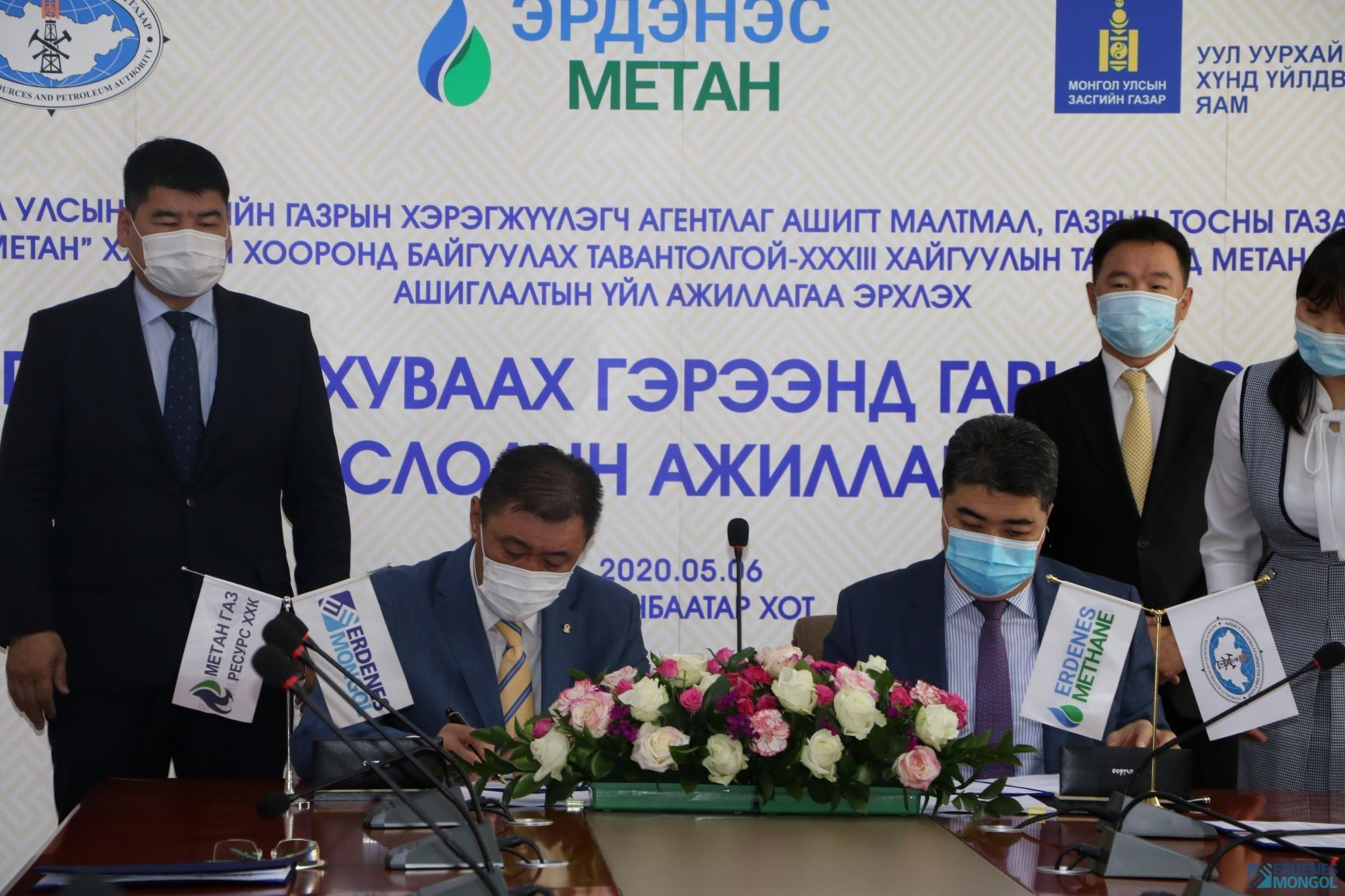 Монгол Улсын Засгийн газраас 2020 оны 4 дүгээр сарын 22-ны өдрийн шийдвэрээр АМГТГ-д “Эрдэнэс Метан” компанитай Тавантолгойн нүүрсний  бүлэг ордод Нүүрсний давхаргын метан хийн бүтээгдэхүүн хуваах гэрээ байгуулах эрхийг олгосны дагуу АМГТГ-ын дарга Х.Хэрлэн, “Эрдэнэс метан” компанийн  захирал Д.Амар нар  гэрээнд  гарын үсэг зурав.