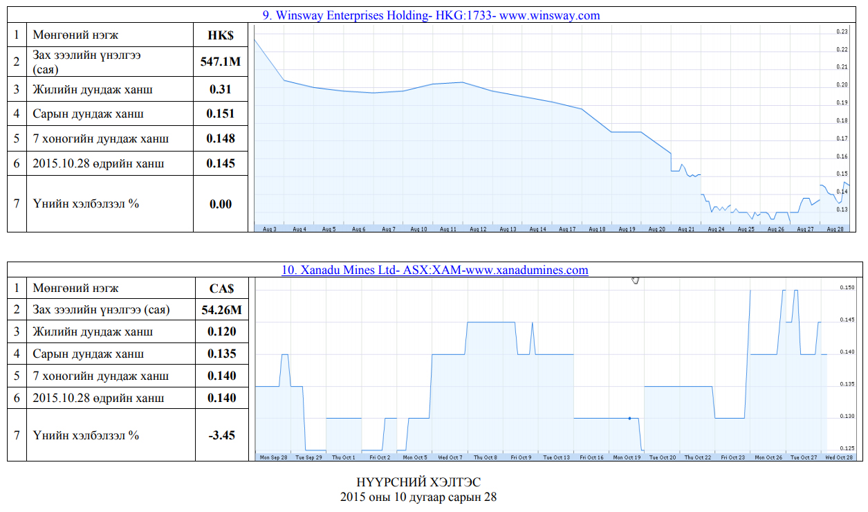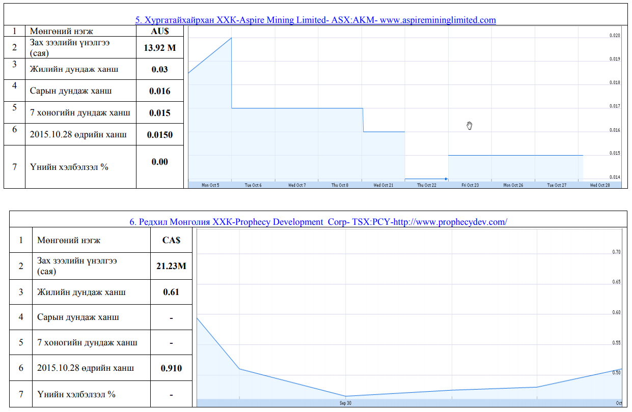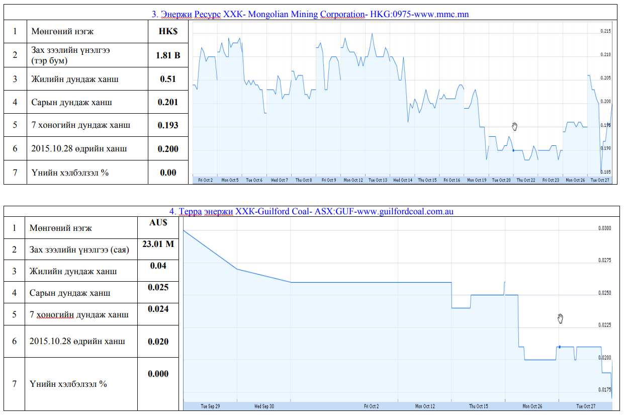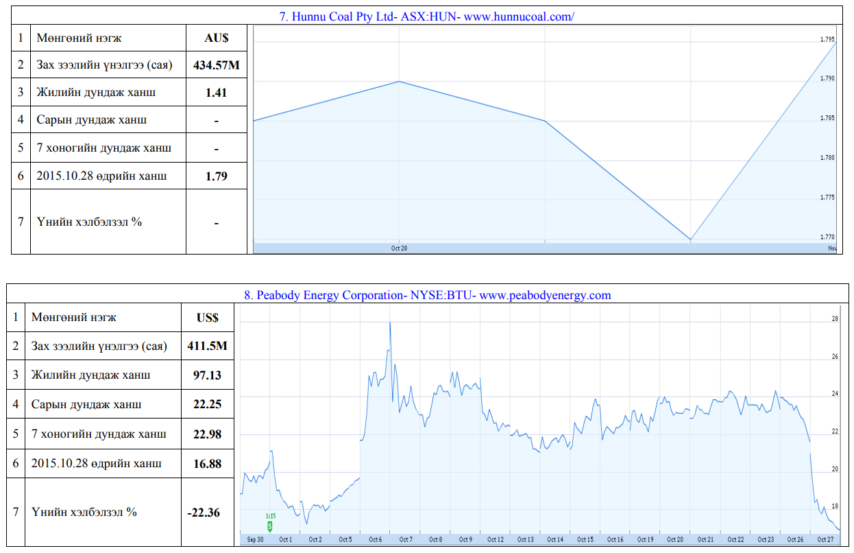 Олон улсын хөрөнгийн бирж дээр хувьцаа нь арилжаалагддаг монгол улсад нүүрсний чиглэлээр үйл ажиллагаа явуулж байгаа компаниудын үнэт цаасны товч мэдээлэл