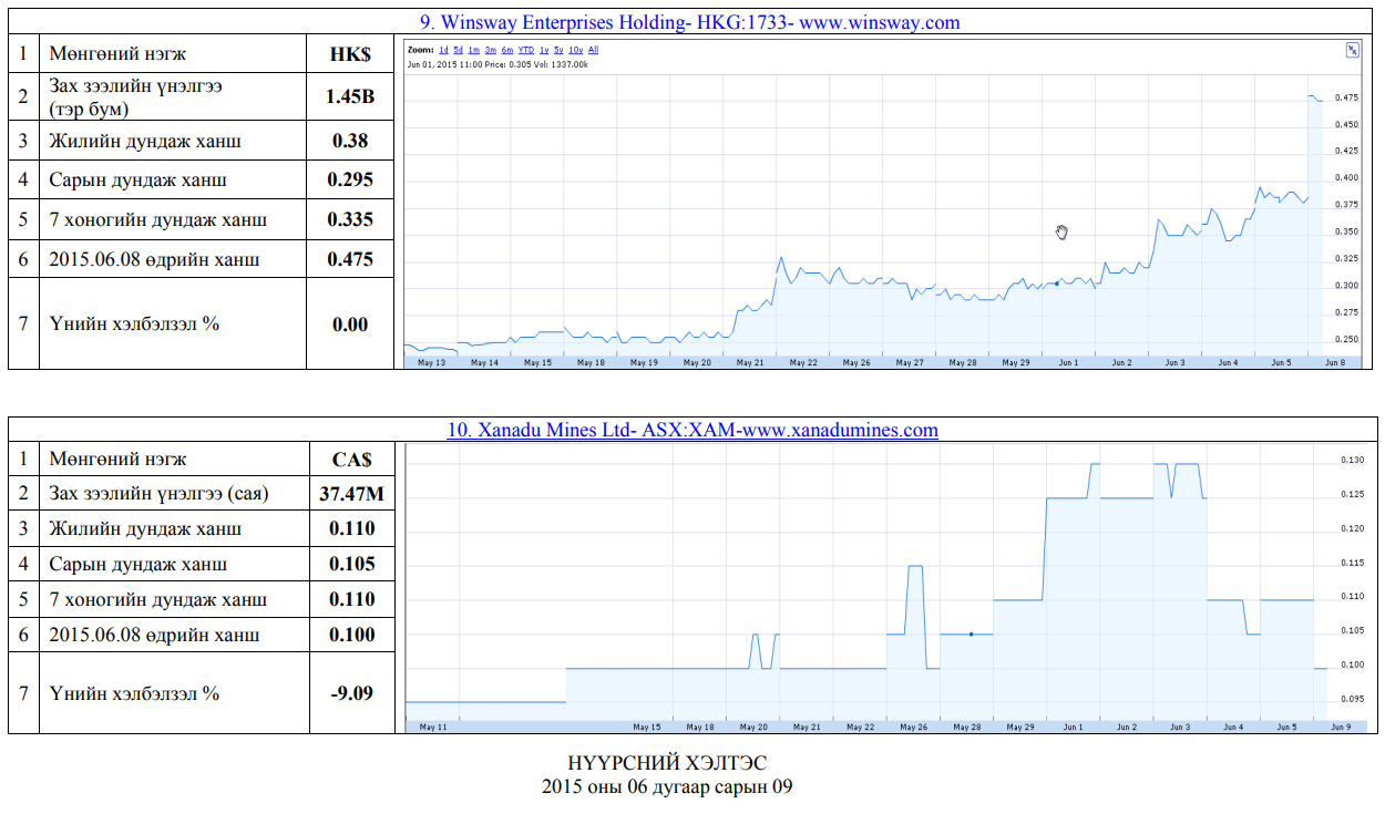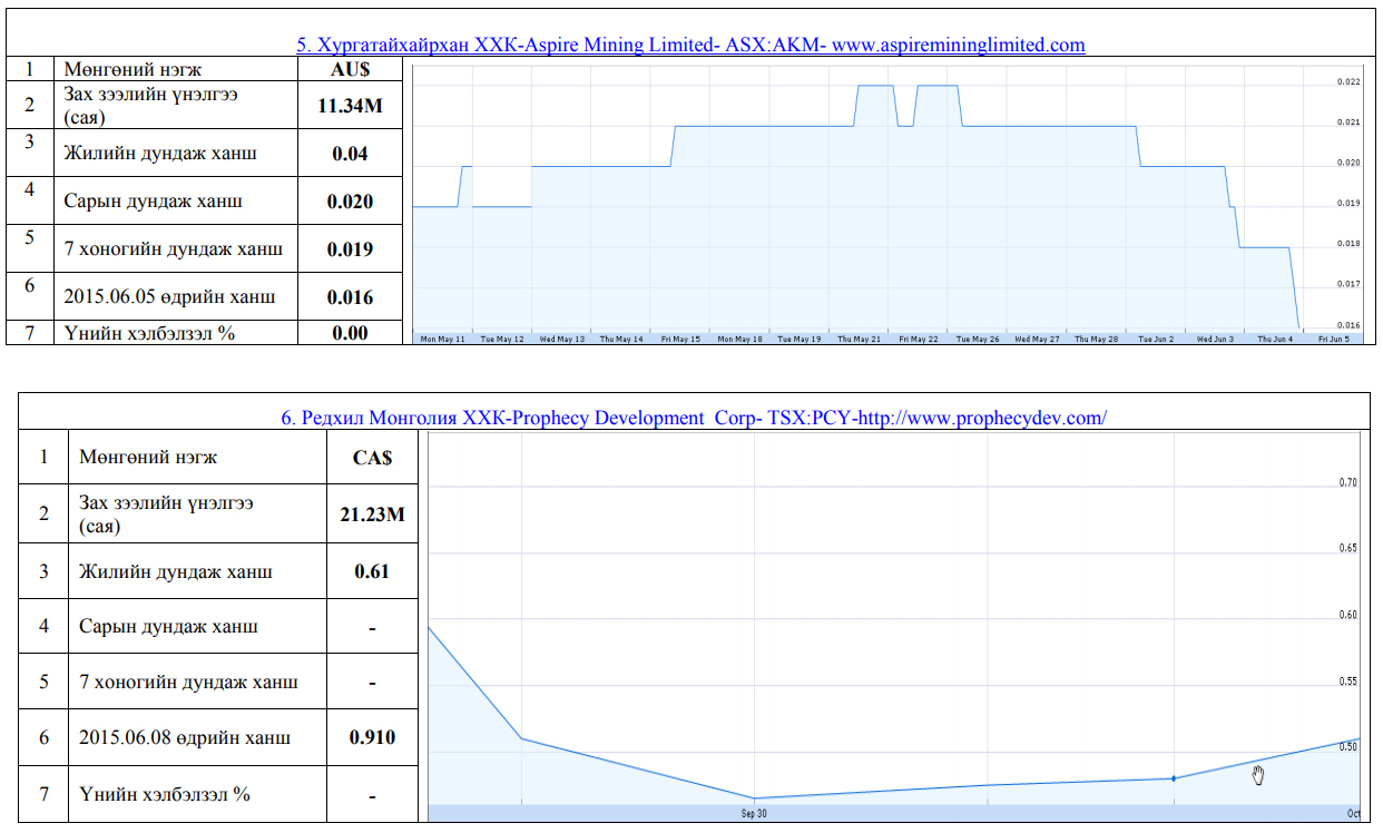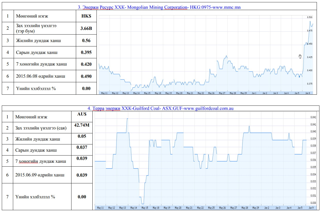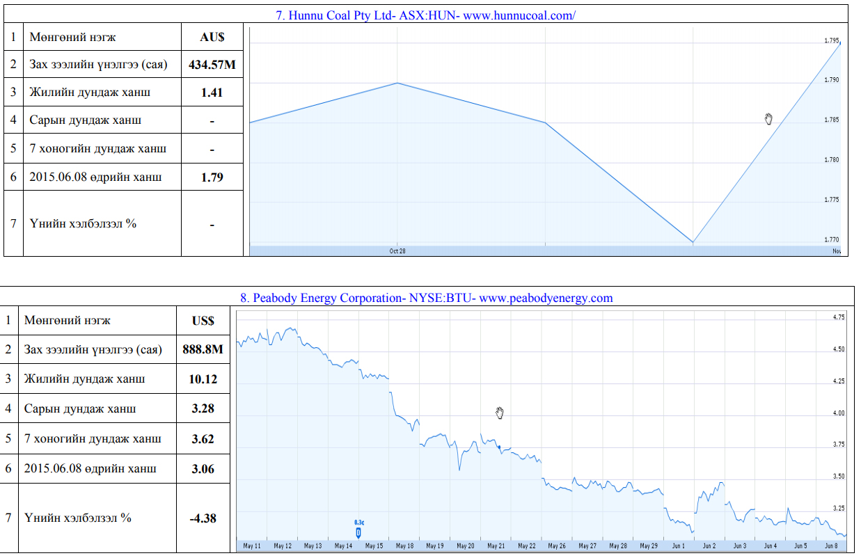 Олон улсын хөрөнгийн бирж дээр хувьцаа нь арилжаалагддаг монгол улсад нүүрсний чиглэлээр үйл ажиллагаа явуулж байгаа компаниудын үнэт цаасны товч мэдээлэл