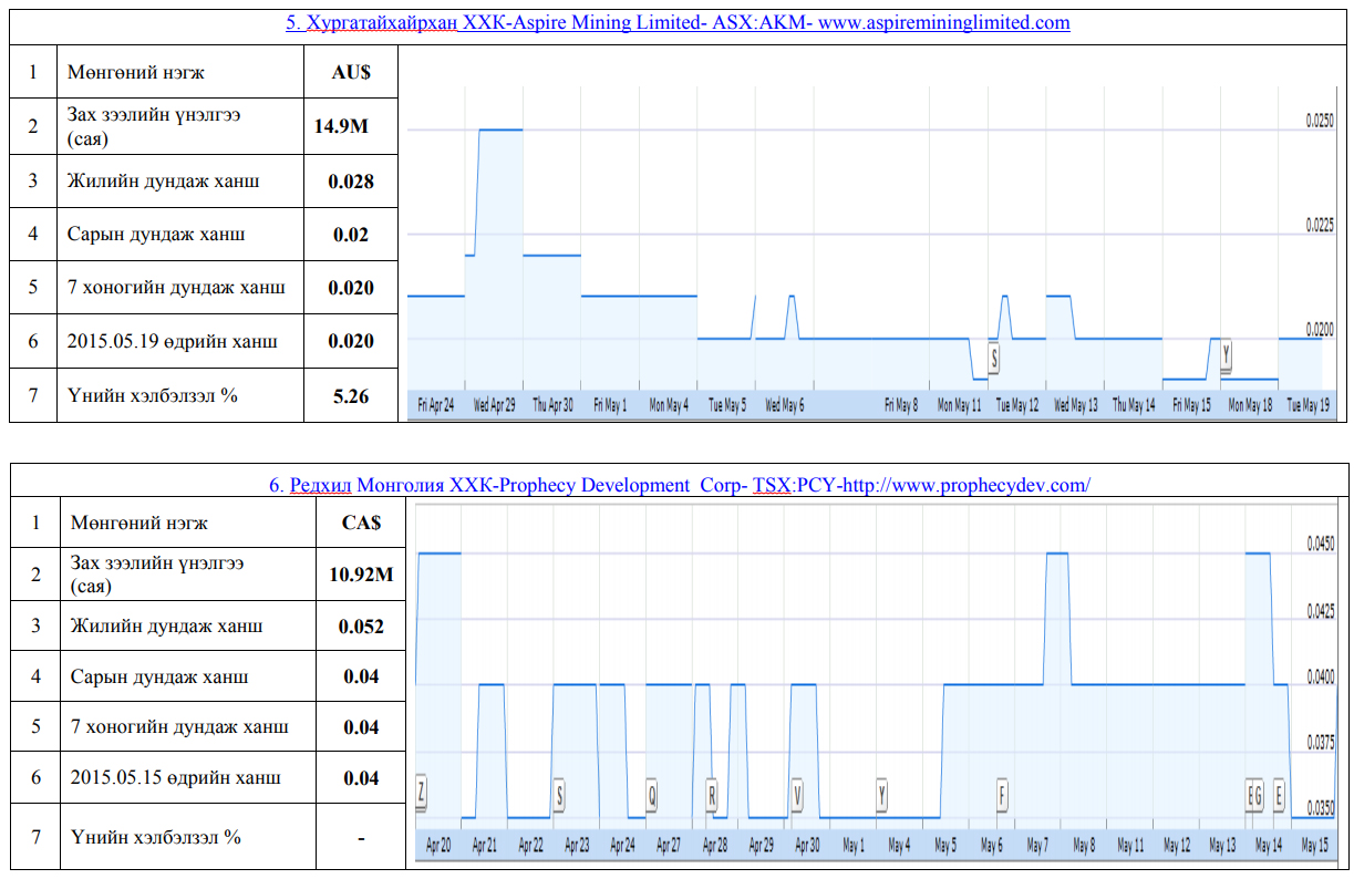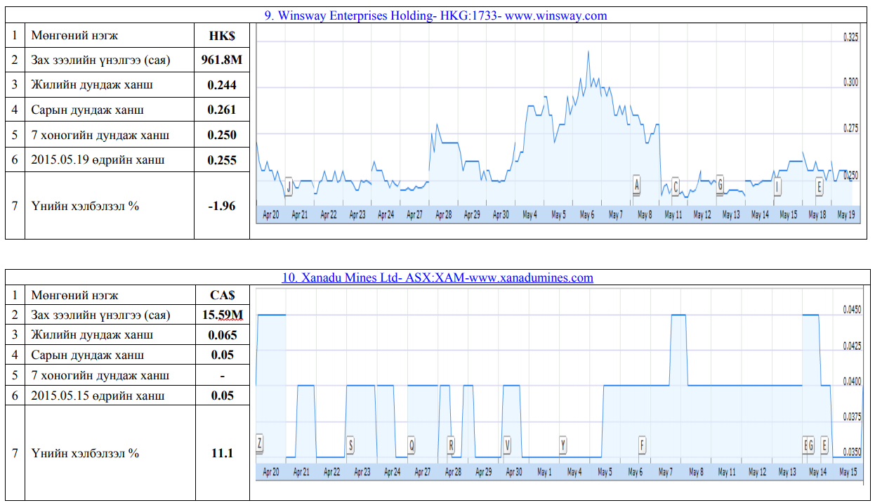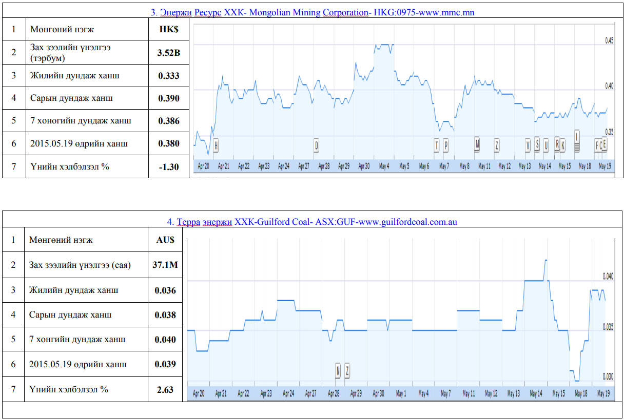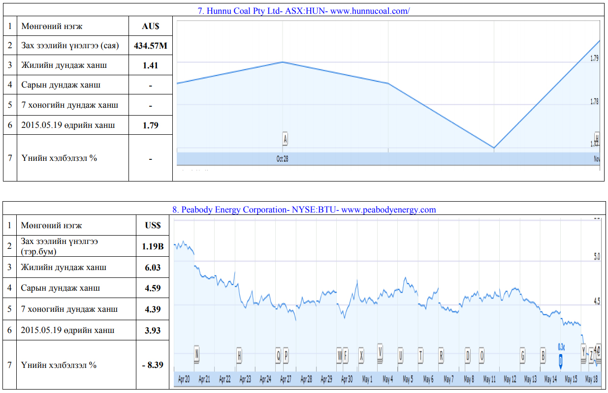 Олон улсын хөрөнгийн бирж дээр хувьцаа нь арилжаалагддаг монгол улсад нүүрсний чиглэлээр үйл ажиллагаа явуулж байгаа компануудын үнэт цаасны товч мэдээлэл
