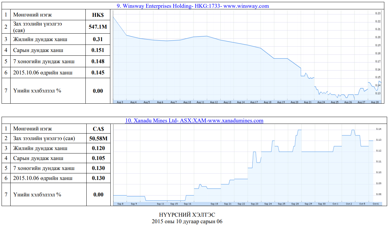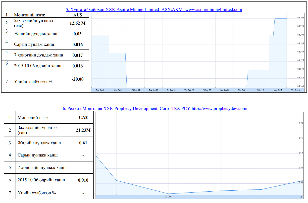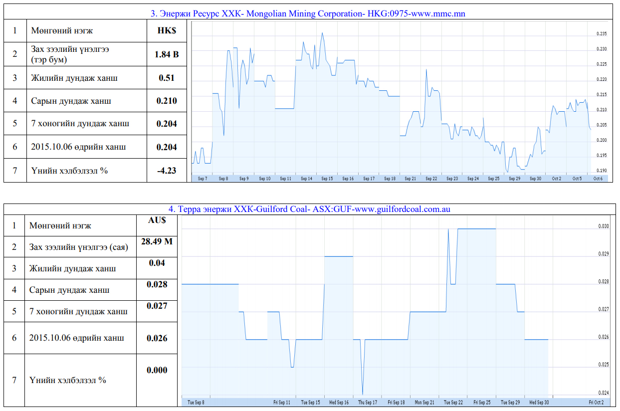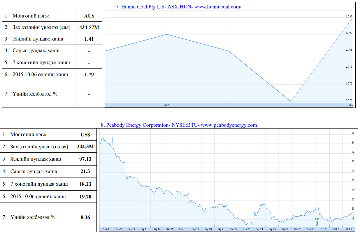 Олон улсын хөрөнгийн бирж дээр хувьцаа нь арилжаалагддаг Монгол улсад нүүрсний чиглэлээр үйл ажиллагаа явуулж буй компаниудын үнэт цаасны товч мэдээлэл