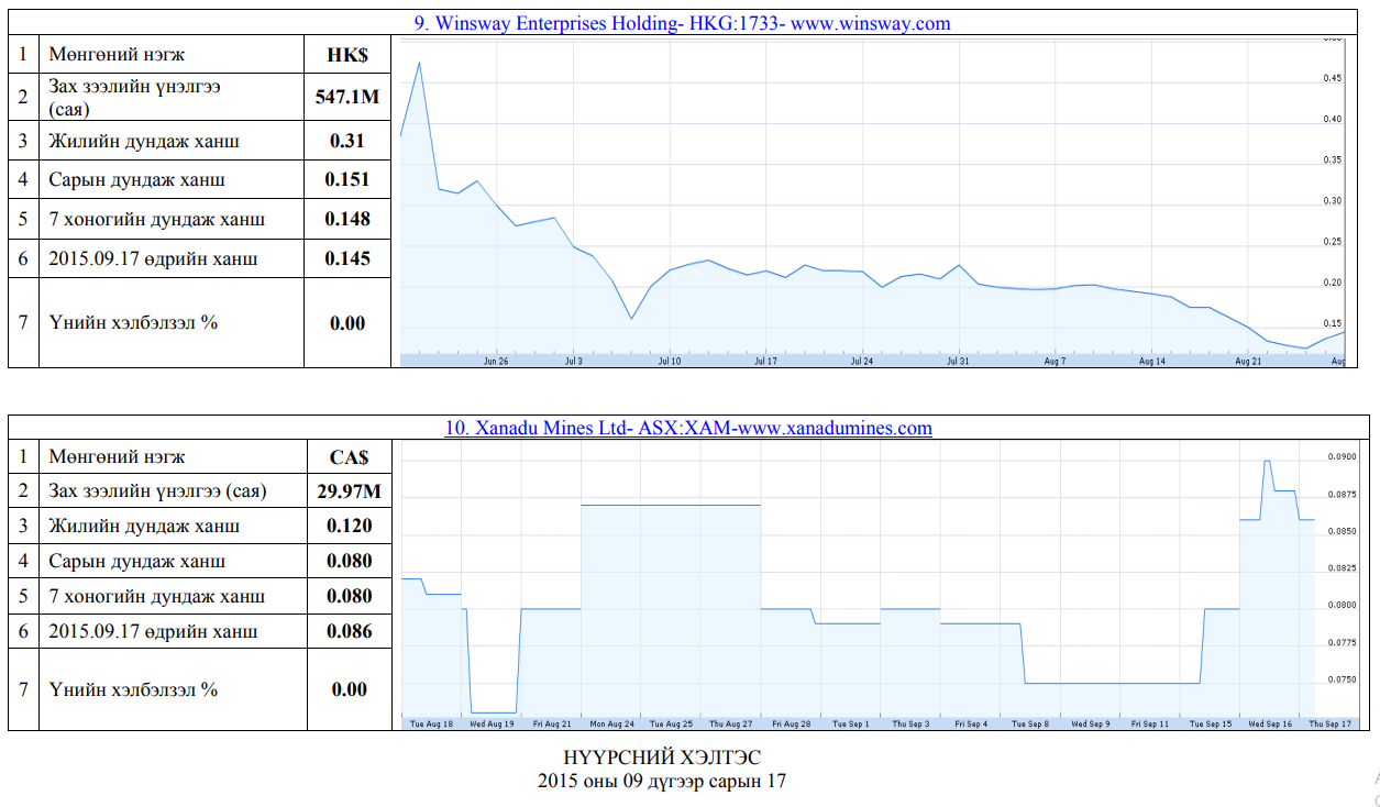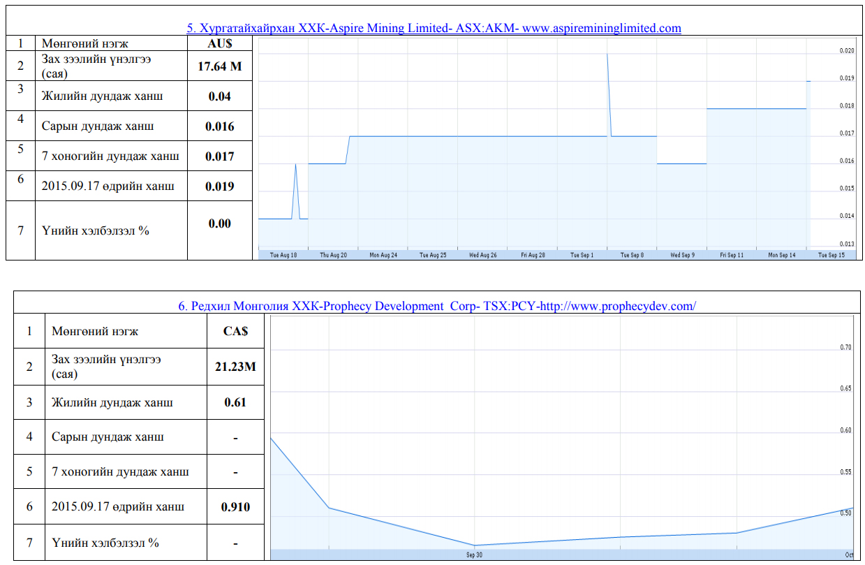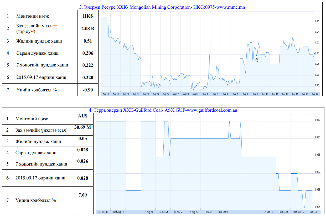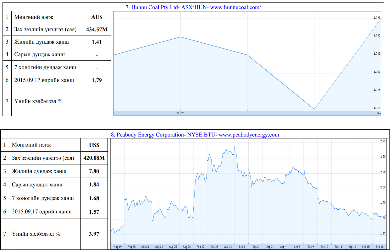 Олон улсын хөрөнгийн бирж дээр хувьцаа нь арилжаалагддаг Монгол улсад нүүрсний чиглэлээр үйл ажиллагаа явуулж буй компаниудын үнэт цаасны товч мэдээлэл