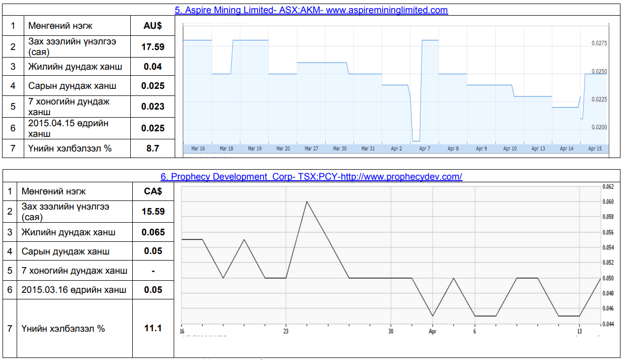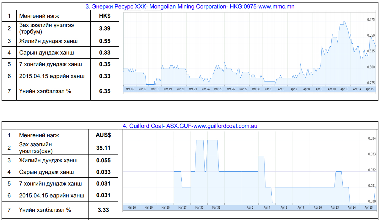 Олон улсын хөрөнгийн бирж дээрх нүүрсний тусгай зөвшөөрөл эзэмшигч зарим компаниудын хувьцааны мэдээлэл