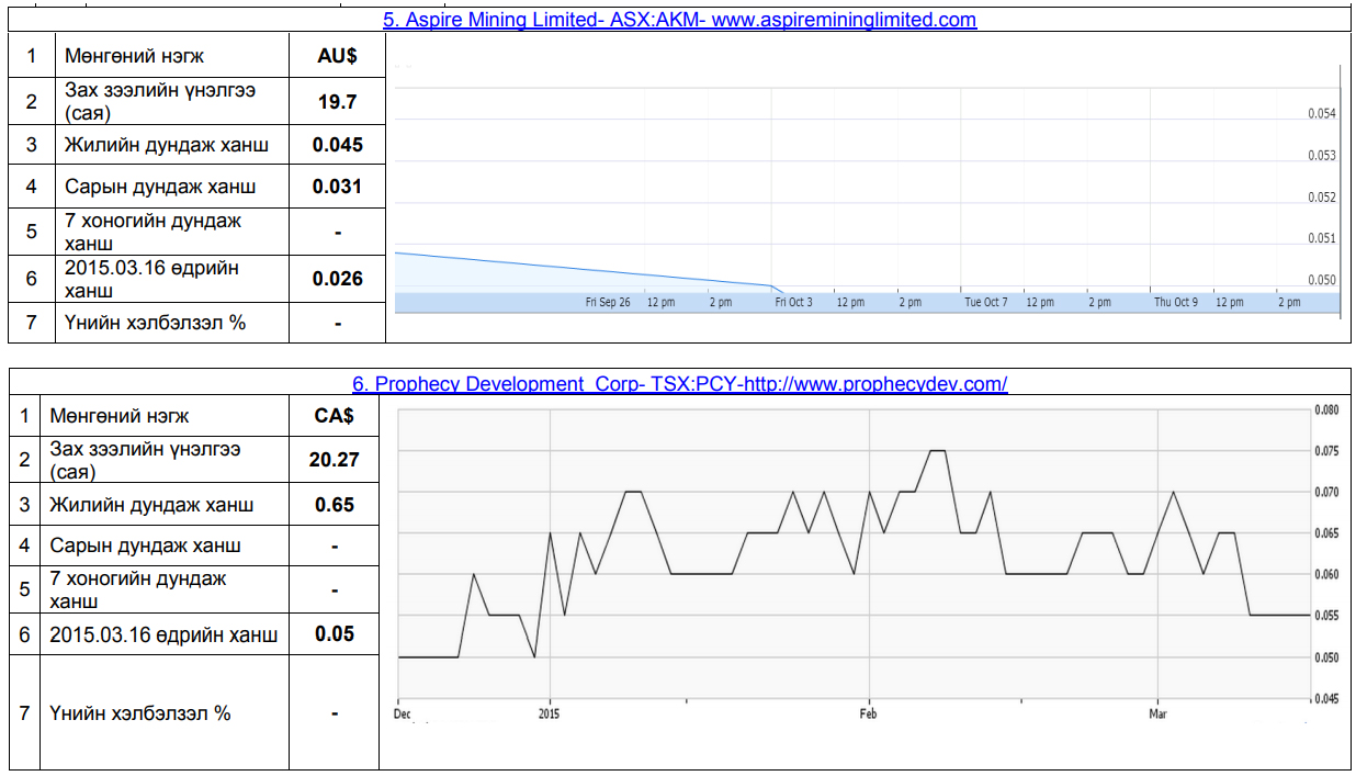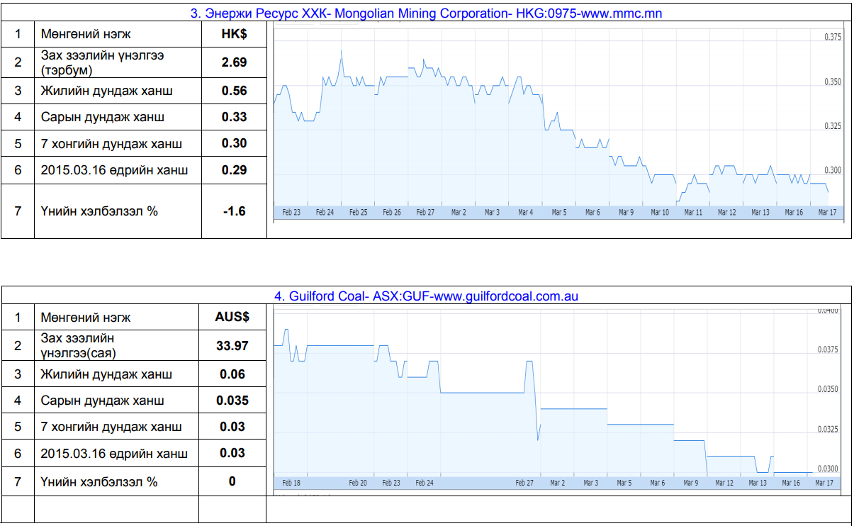 Олон улсын хөрөнгийн бирж дээрх нүүрсний тусгай зөвшөөрөл эзэмшигч зарим компаниудын хувьцааны мэдээлэл