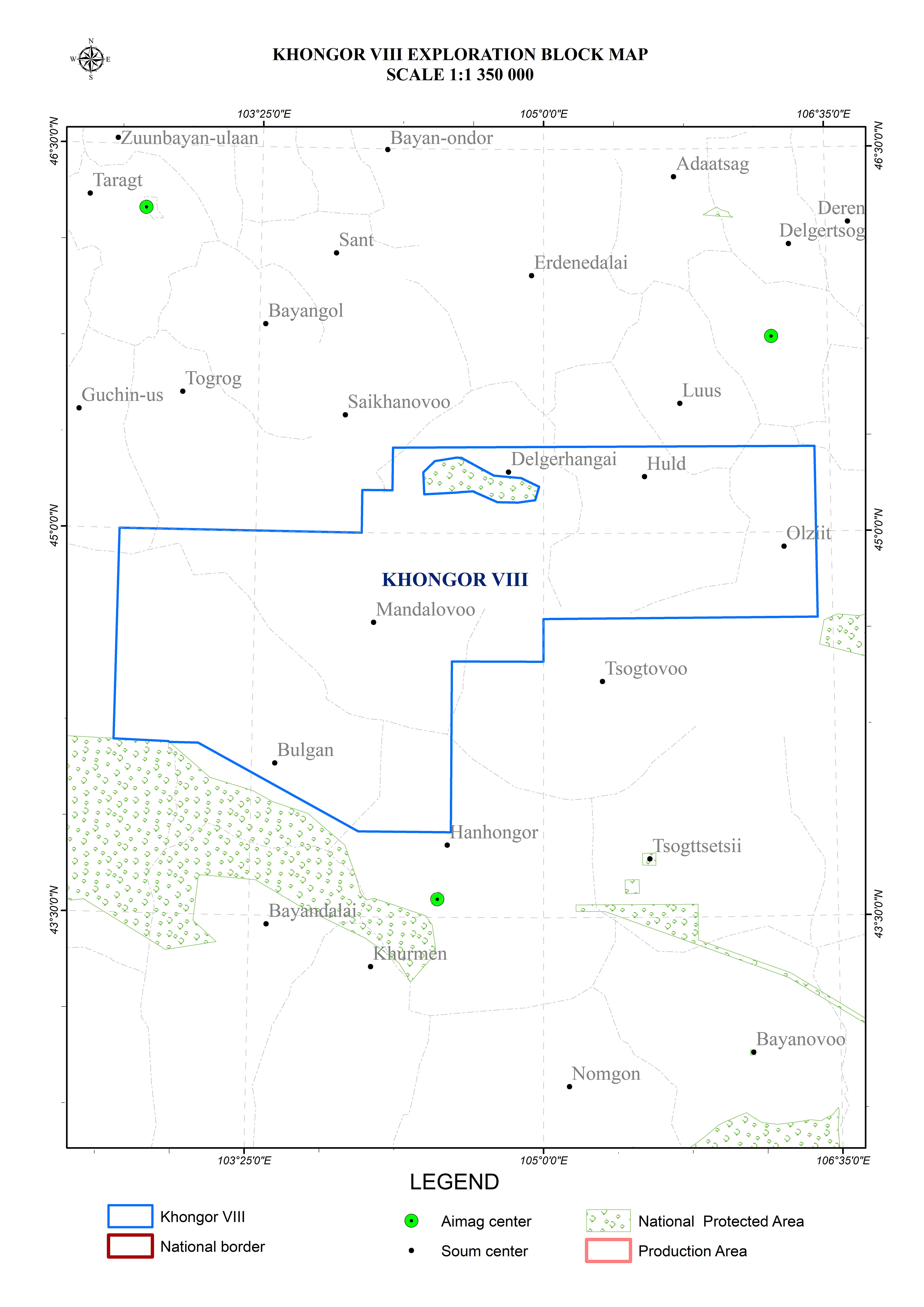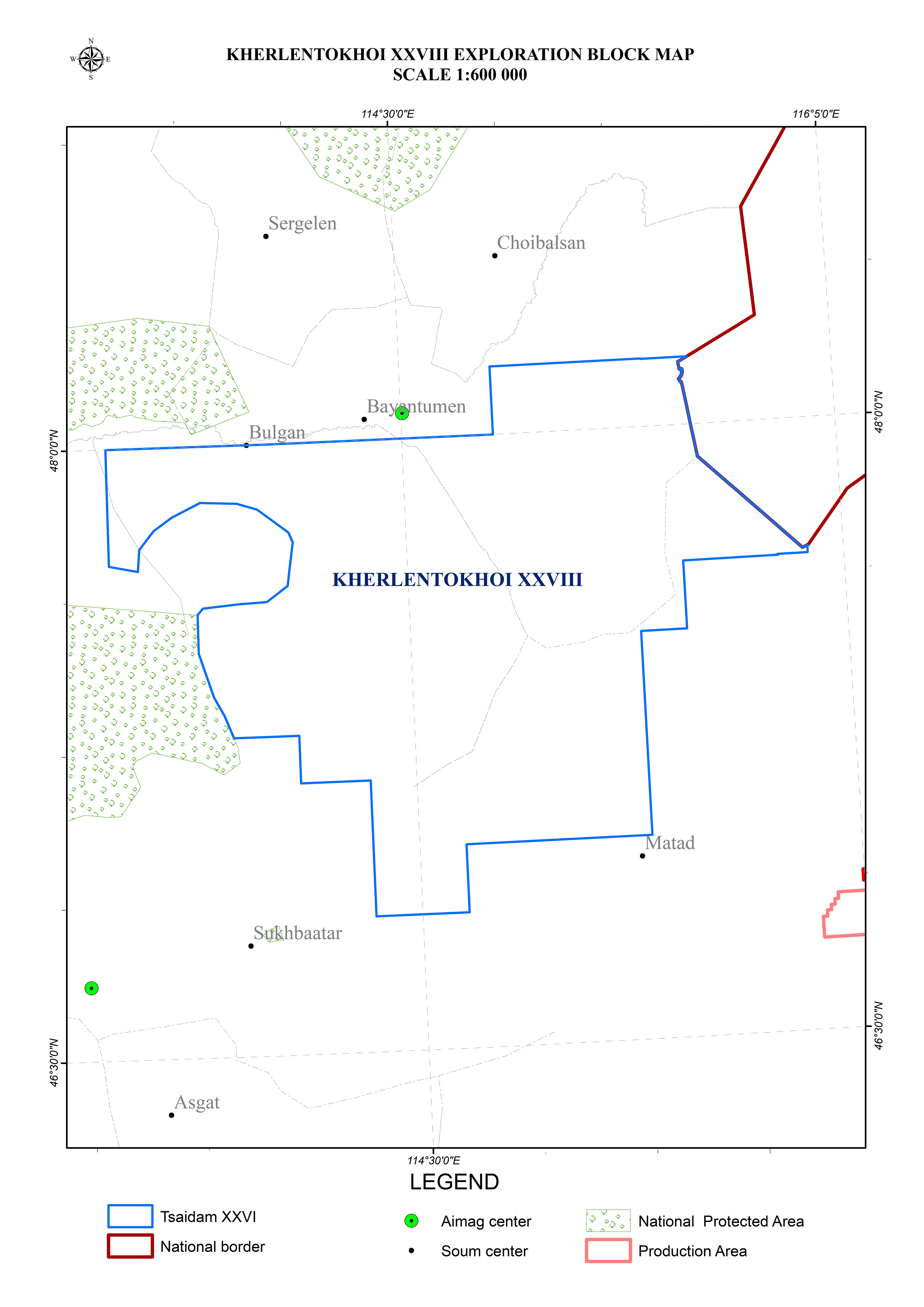 The Government of Mongolia represented by the Mineral Resources and Petroleum Authority of Mongolia of the Ministry of Mining and Heavy Industry, acting in accordance with the Law on Petroleum, on February 24th of 2023 announced second trench for Open International Tender to obtain the License for the Use of Petroleum Resources on the onshore License Blocks VIII (Khongor), XXII (Bayankhoshuu), XXV (Choir), XXVI (Tsaidam) and XXVIII (Kherlentokhoi).