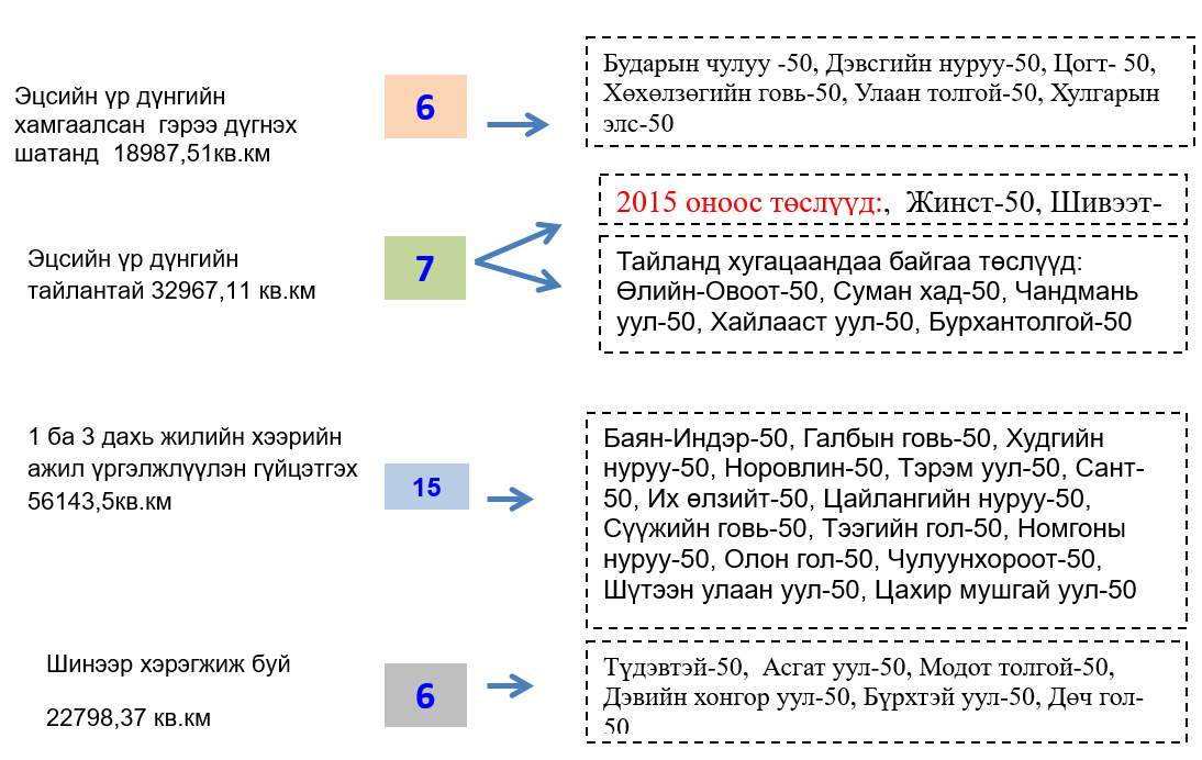2016-2018 онд Монгол Улсын хэмжээнд 1:50 000-ны масштабын ГЗЕЭА-ын 34 төсөл хэрэгжиж байгаа бөгөөд судалгааны ажлыг   дотоодын аж ахуйн нэгжүүд гүйцэтгэж байна.