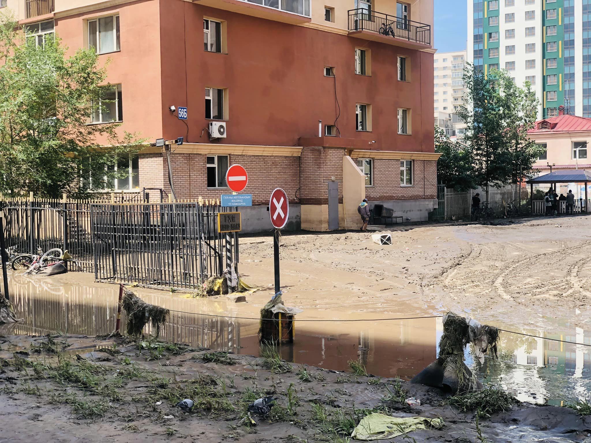 Үргэлжлэн орсон борооны улмаас нийслэлд нөхцөл байдал хүндэрсэн зарим байршлуудын зам, талбайг лаг, шавраас чөлөөлж, цэвэрлэх ажил явагдаж байна.