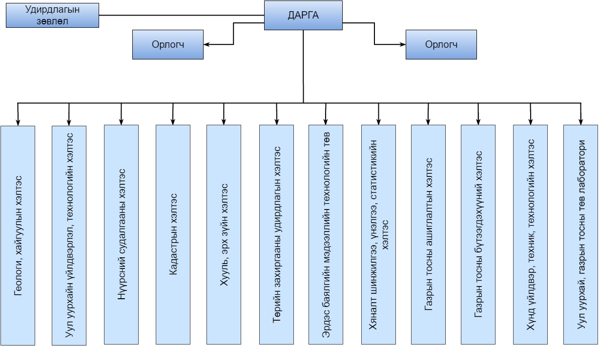 Төрийн захиргааны удирдлагын манлайлал, хүний нөөцийн удирдлагаар хангах, байгууллагын хөрөнгө санхүүгийн эх үүсвэрийг оновчтой удирдах, тайлагнах, газрын тостой холбоотой үйл ажиллагааны орлогыг тооцох, төсөвт төвлөрүүлэх, гэрээлэгчдийн төлөвлөгөө төсөв, өртөг нөхөгдөх зардлыг хянах, ашигт малтмалын хайгуулын ажлын зардлын доод хэмжээг баталгаажуулах;