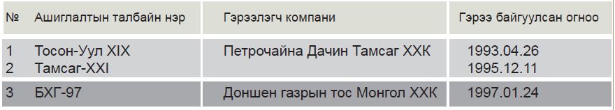 Газрын тосны ашиглалтын үйл ажиллагаа явуулж байгаа талбайнуудын талаар: