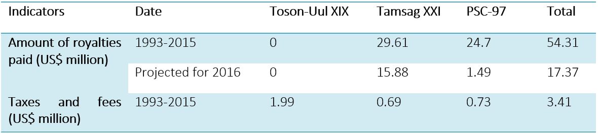 Тамсагийн газрын тосны орд Байршил: Дорнод аймаг, Халхгол сум Гэрээлэгч: Петрочайна Дачин Тамсаг ХХК Гэрээ байгуулсан огноо: 1995.12.11 Ашиглалтын талбай: 209.2 км2 (2.1%) Нийт өрөмдсөн цооног: 613 Олборлолтын цооног: 402 Хоногийн олборлолт: 743 тонн Газрын тос: 875 кг/м3, 0.17% хүхэр, 18.9мПа*с Ашигт давхрага: 2200 метр Хөрөнгө оруулалт: 1.477 тэрбум ам.доллар |