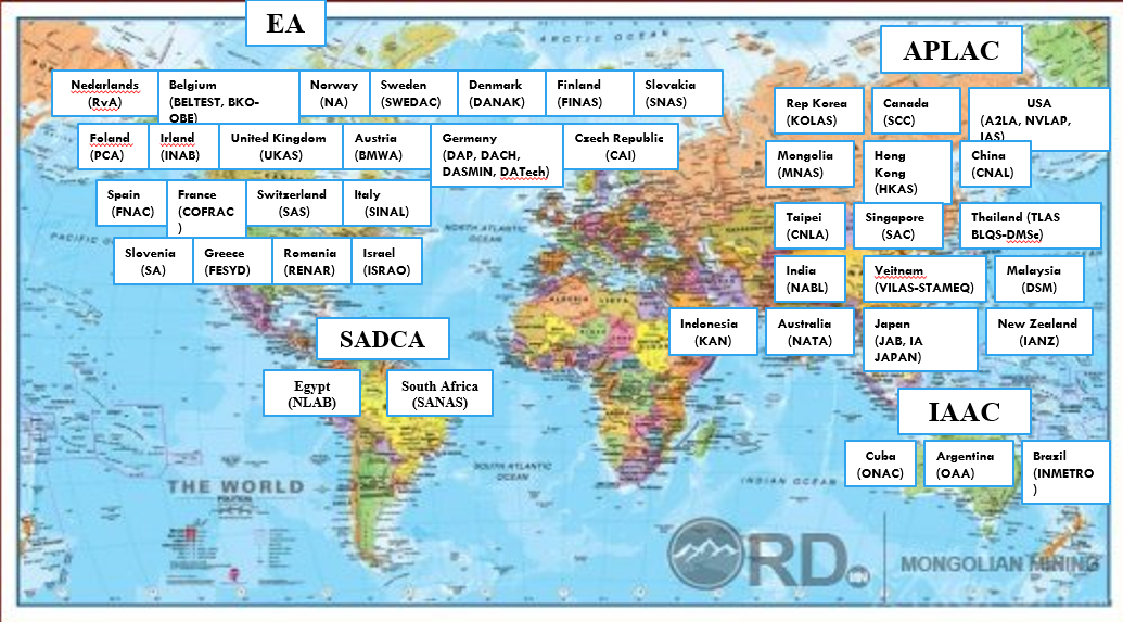 ОЛОН УЛСЫН ЛАБОРАТОРИ ИТГЭМЖЛЭЛИЙН ХАМТЫН АЖИЛЛАГААНЫ БАЙГУУЛЛАГЫН ХАРИЛЦАН ХҮЛЭЭН ЗӨВШӨӨРӨХ ХЭЛЭЛЦЭЭР (ILAC MRA)-ИЙН ТАНИХ ТЭМДГИЙГ  ХАМТРАН АШИГЛАХ ГЭРЭЭ БАЙГУУЛСАН.