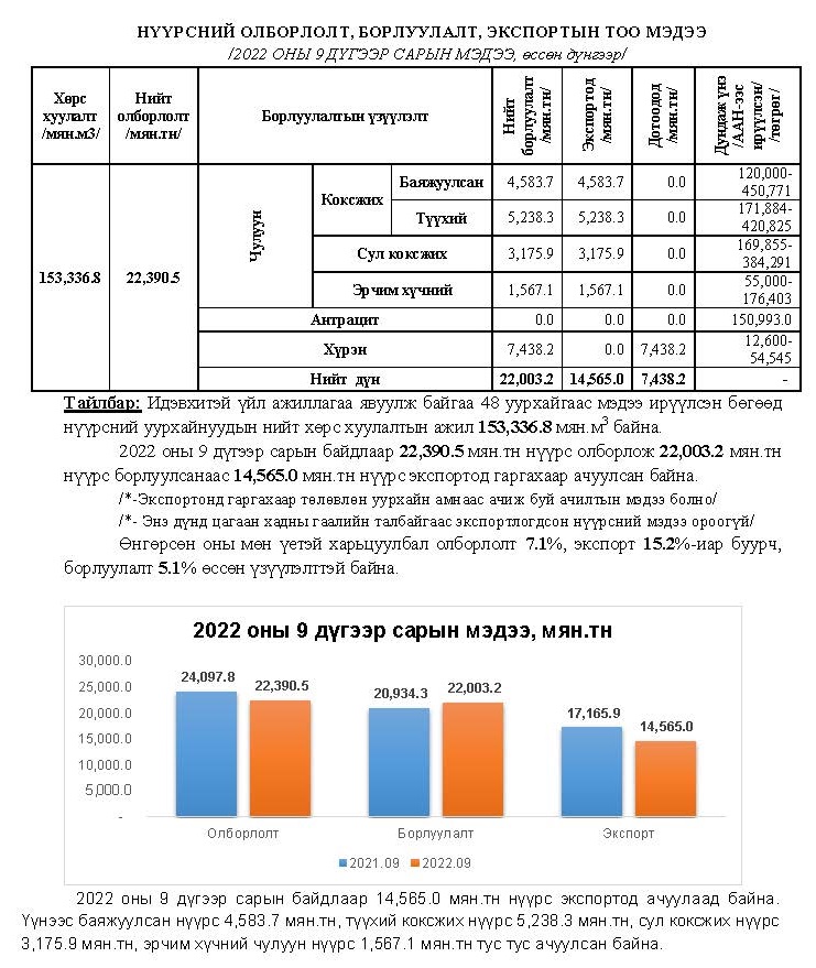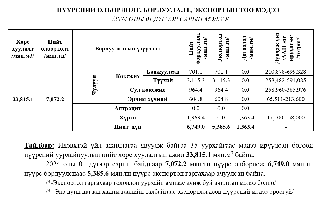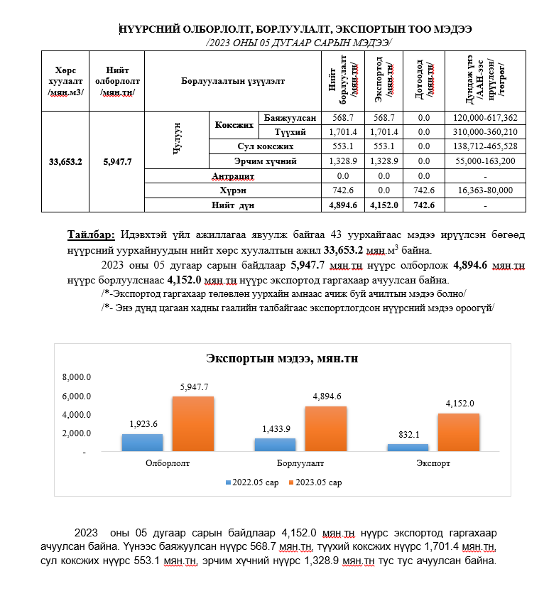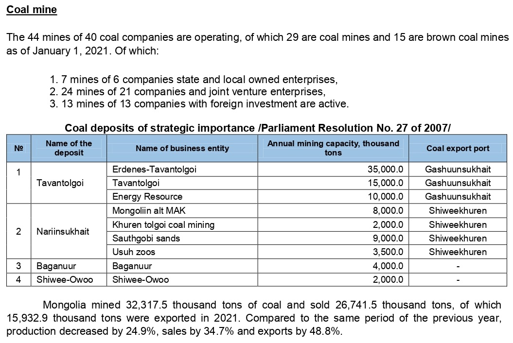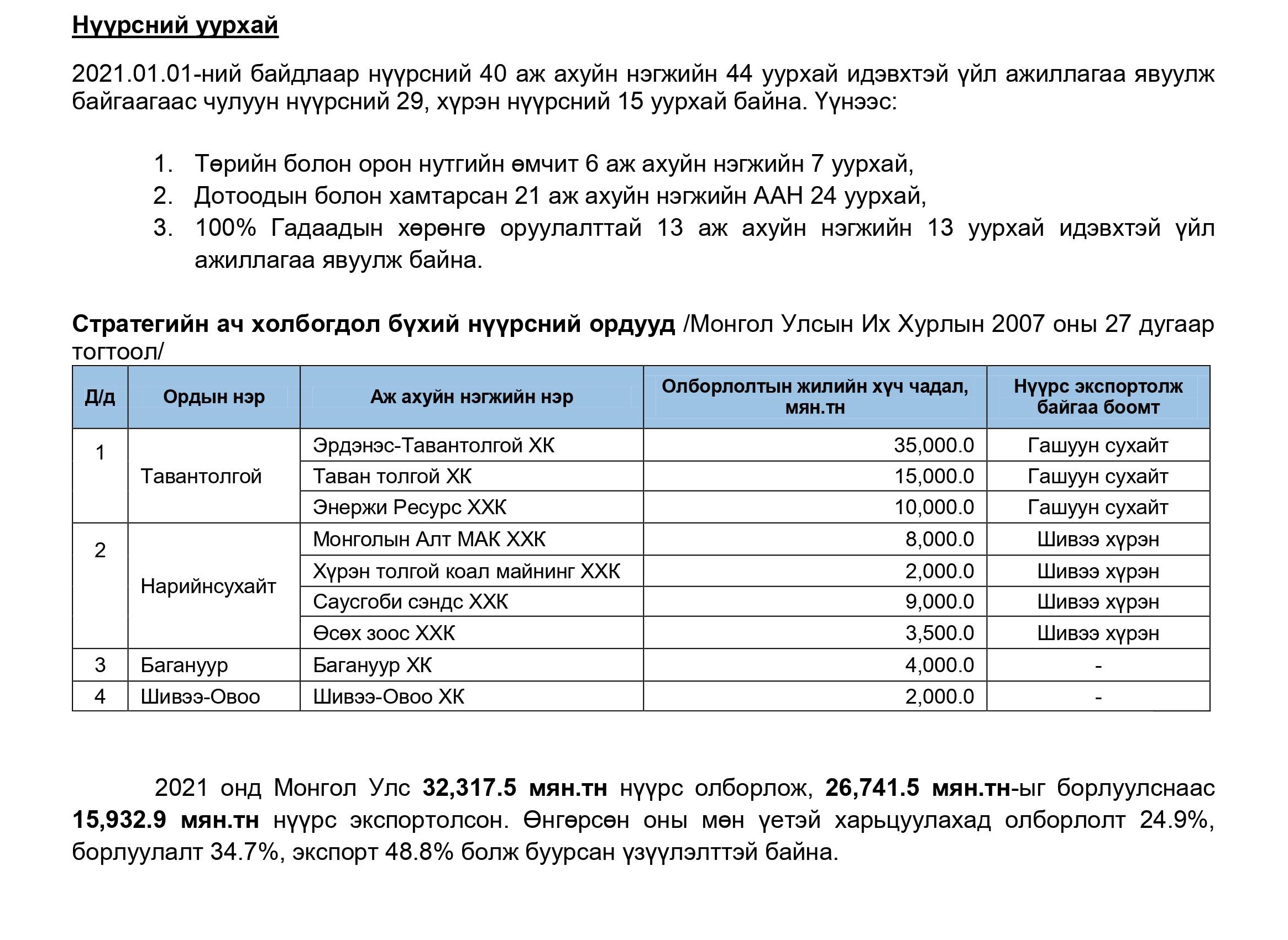 Нүүрсний салбар монгол улсын эдийн засагт татах