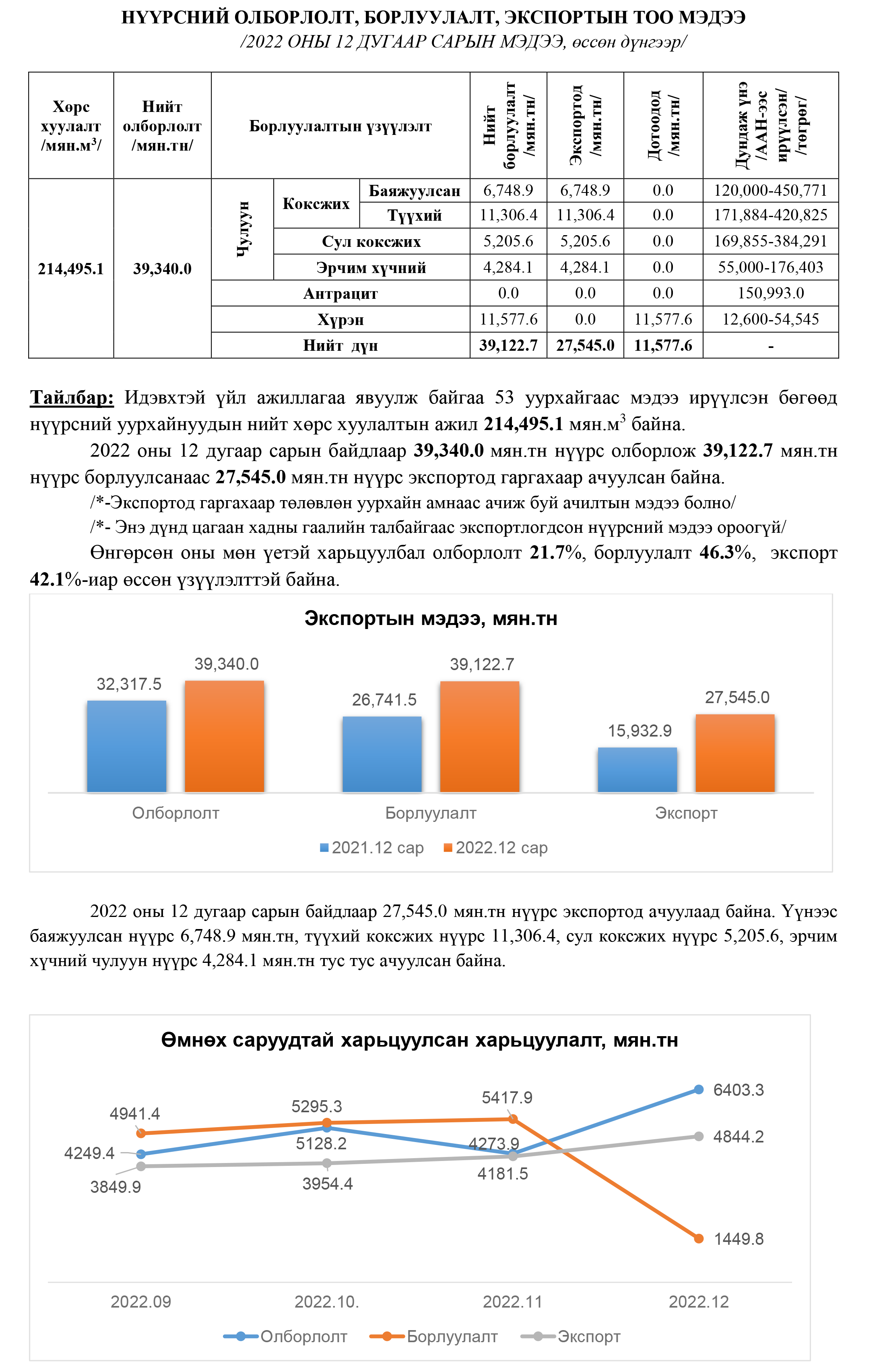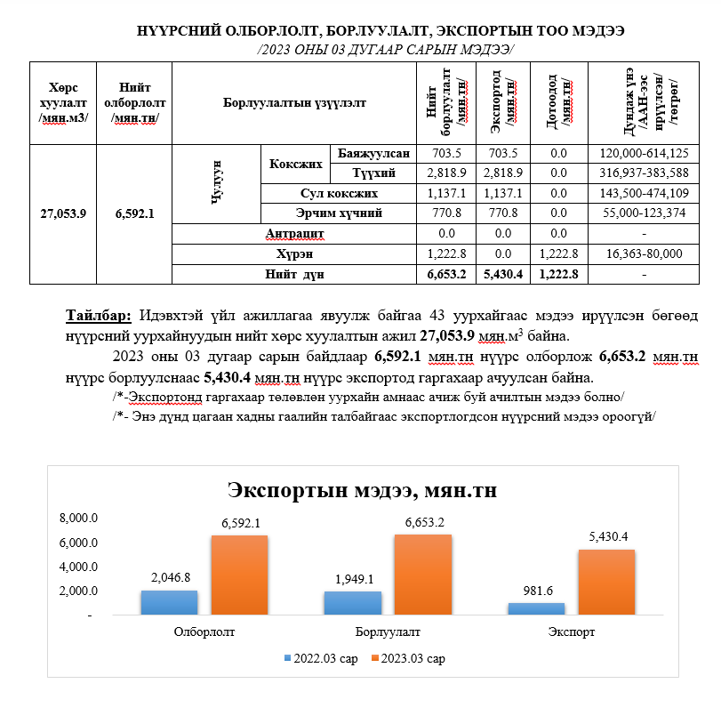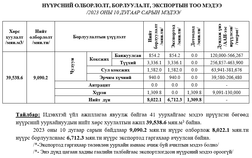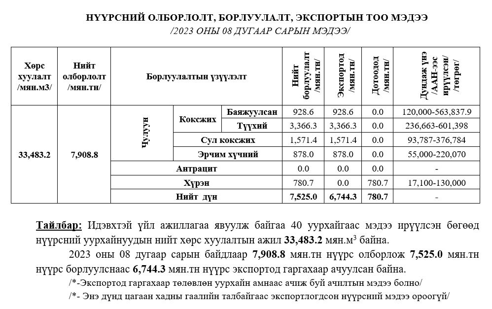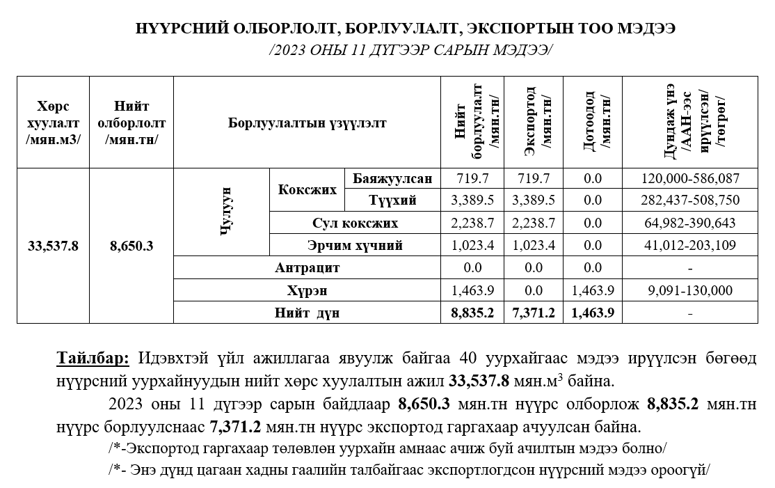 Нүүрсний салбар монгол улсын эдийн засагт татах